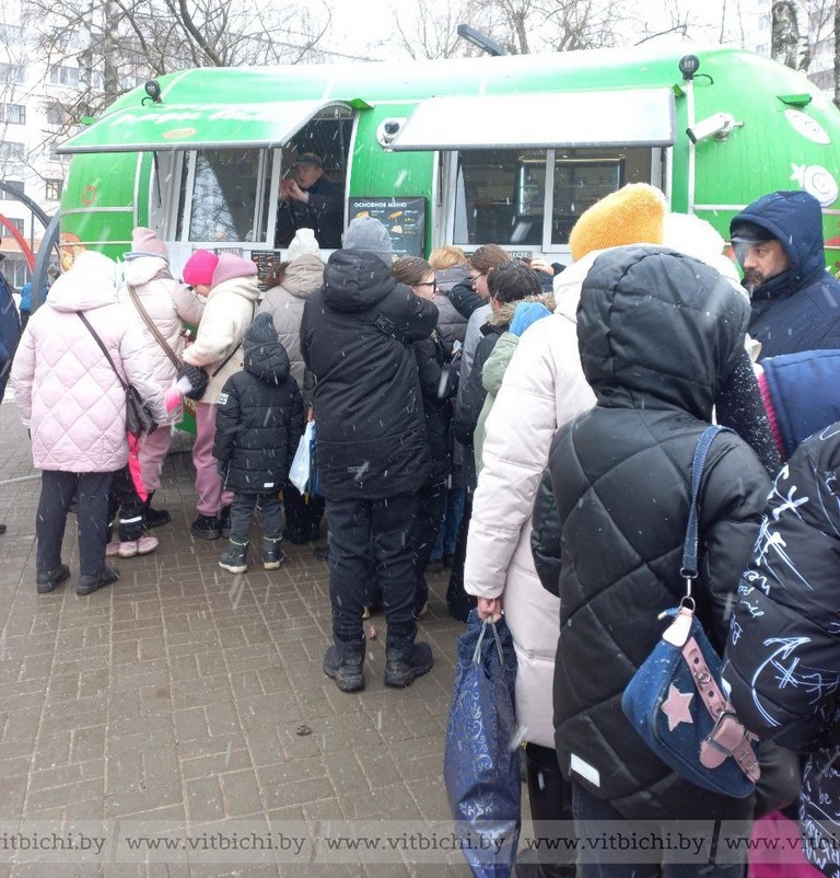А самые большие очереди, конечно же, наблюдались у передвижного кафе, где предлагали горячие чай, кофе, вкусняшки и блины. Вместе всё вкусно!