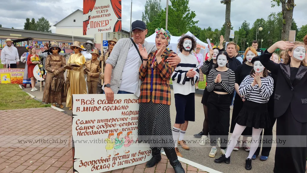 Главное событие – конкурс театров миниатюр и индивидуальных исполнителей. Это несколько часов улыбок и веселья, колкого народного юмора и тонкого мастерства пантомимы. И только жюри в некотором смысле было не до смеха. Перед ним стояла сложная задача – выбрать самых уморительных. Итак, Гран-при конкурса получил народный театр миниатюр «БУФФ» Шумилинского районного центра культуры за программу «Бульбашы на кірмашы», на 1-м месте – лепельский «Балаган», диплом II степени достался «Шпильке» из Глубокого, бронзу увезли в Городок артисты коллектива «Фонограф».
