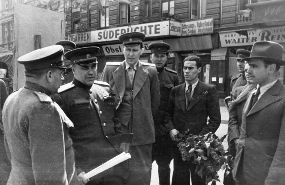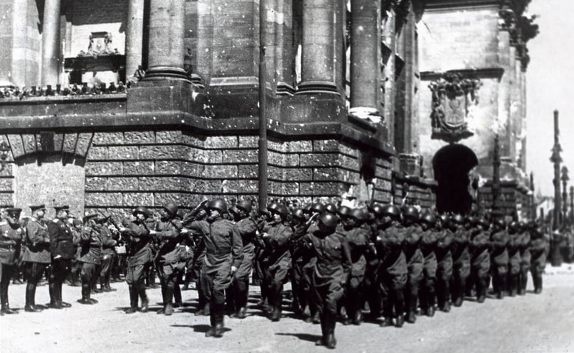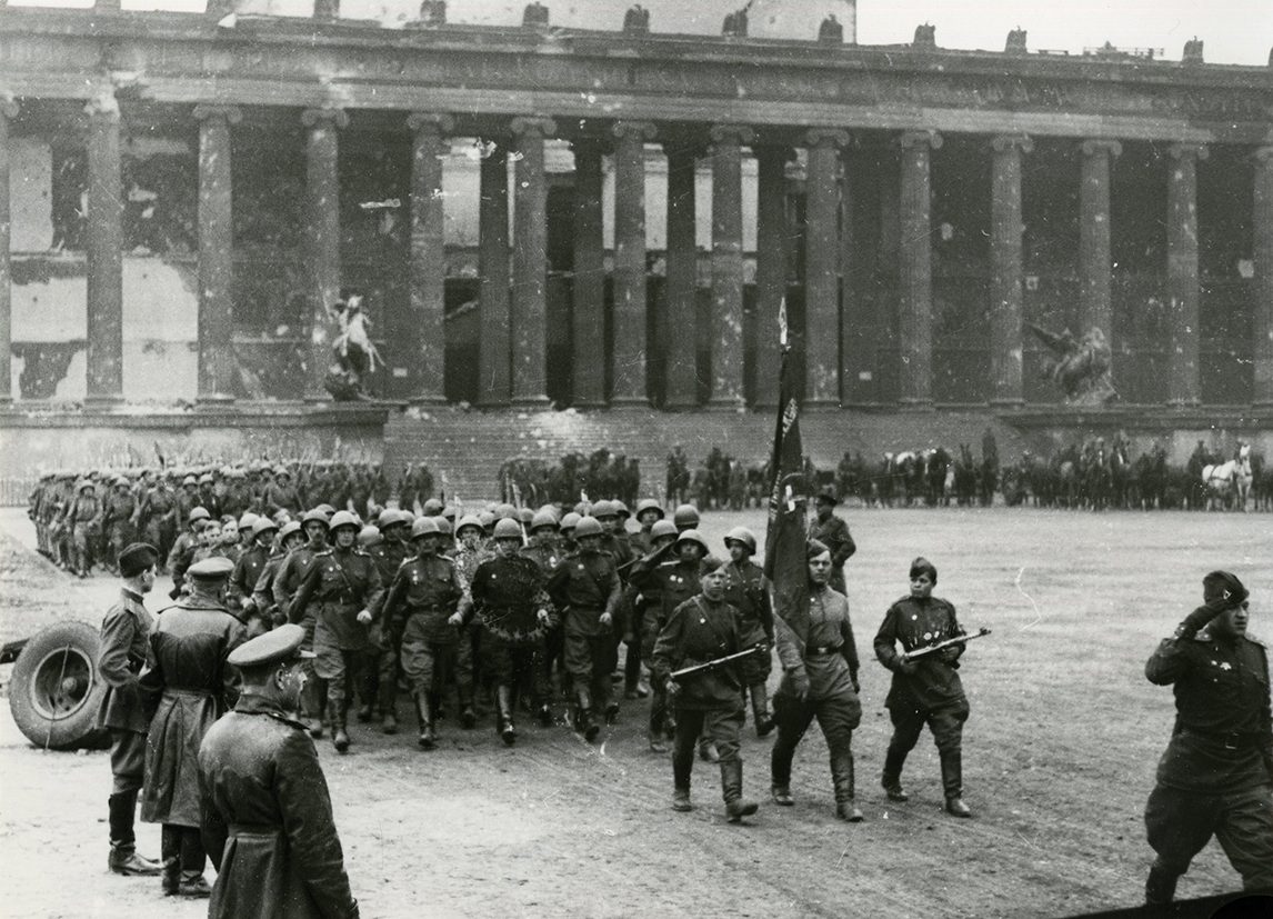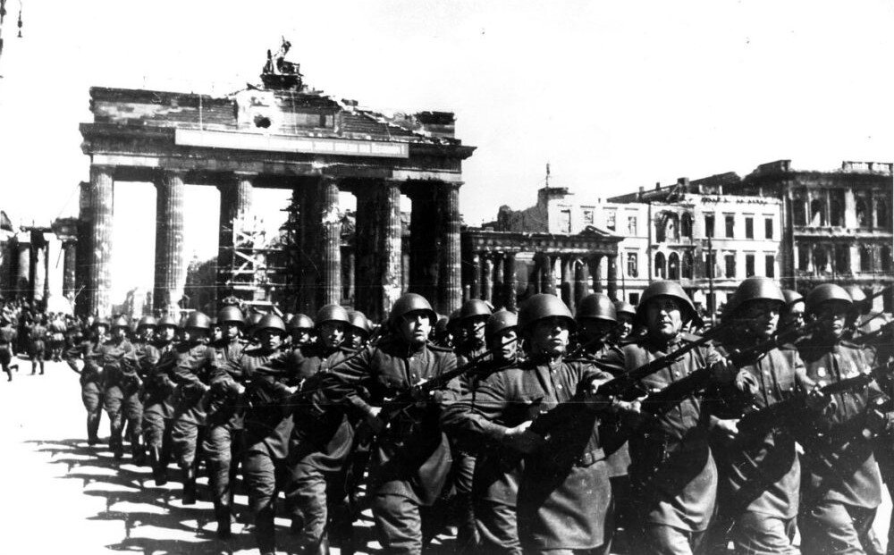 В Берлине состоялся парад. Торжественным шагом советские воины прошли от рейхстага до Бранденбургских ворот. Принимал парад первый комендант Берлина, начальник Берлинского гарнизона советских войск Герой Советского Союза генерал-полковник Николай Берзарин.
