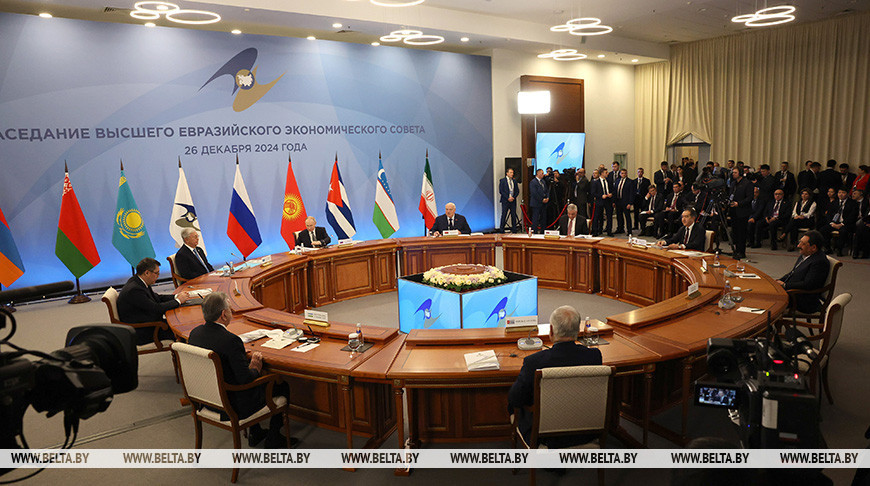Лидеры стран Евразийского экономического союза 26 декабря по итогам саммита утвердили основные направления международной деятельности на 2025 год, передает корреспондент БЕЛТА.