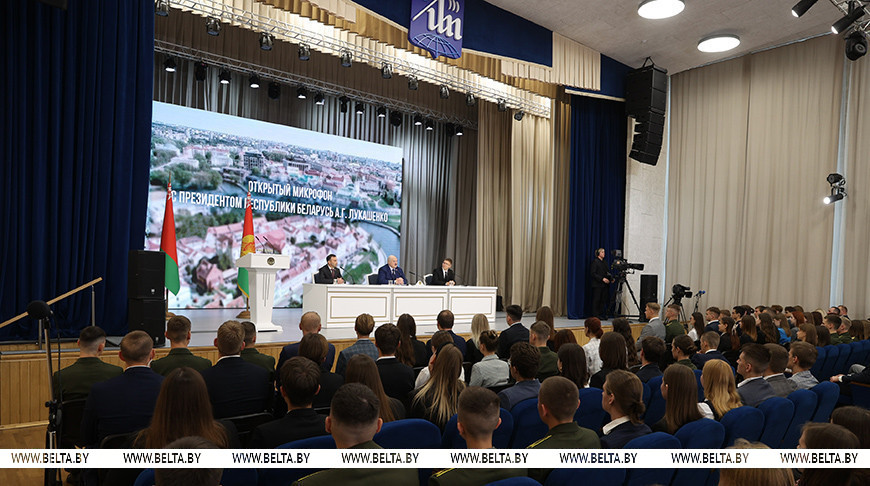 Прежде чем начать общение, глава государства решил сказать несколько слов, как говорится, на злобу дня. "Я достаточно информирован о многих процессах в обществе. В том числе знаком (и очень хорошо знаком) с вашими учебными программами, отслеживаю, как проходят вступительные экзамены, распределение. О чем вы пишите, говорите, спорите, в общих чертах мне тоже известно", - отметил Александр Лукашенко.