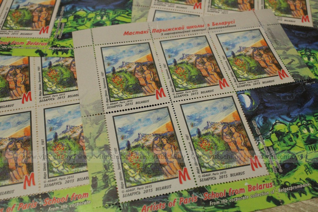 Творчество нашего земляка, художника с мировым именем Марка Шагала нашло отражение в марках, которые в разные годы выпускало РУП «Белпочта». Самая «молодая» называется «Марк Шагал. Влюбленные. 1981». В 2015 году она была издана тиражом 50 тысяч и вошла в серию «Художники Парижской школы из Беларуси». А в этом году марка отмечает свой юбилей – 10 лет со дня выхода в обращение.