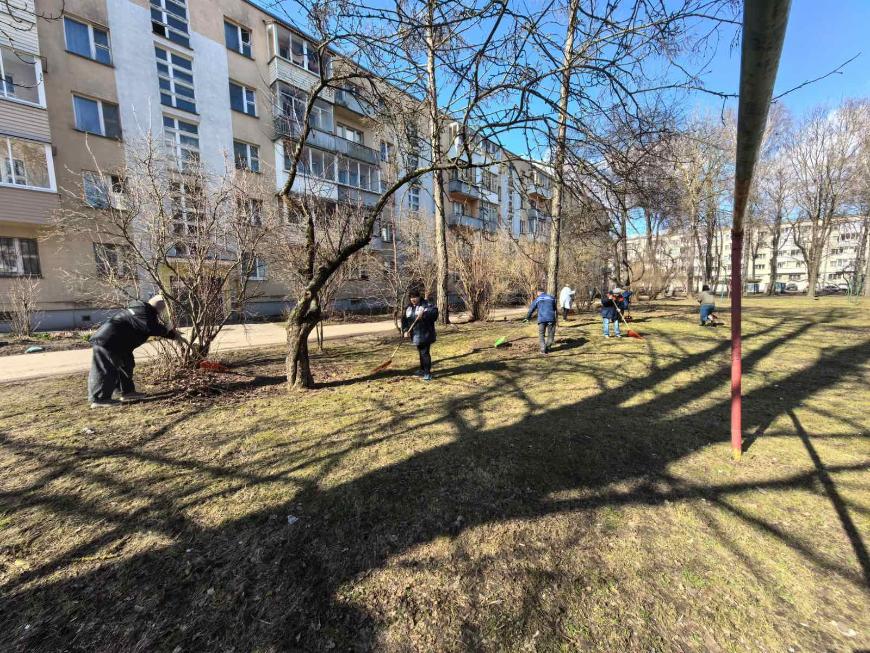 28 марта / «Витьбичи» / Вера Мурашкина/. Администрация ЖРЭТ г. Витебска и специалисты всех 11 ЖЭУ поработали сегодня на уборке придомовых территорий в рамках месячника по благоустройству.