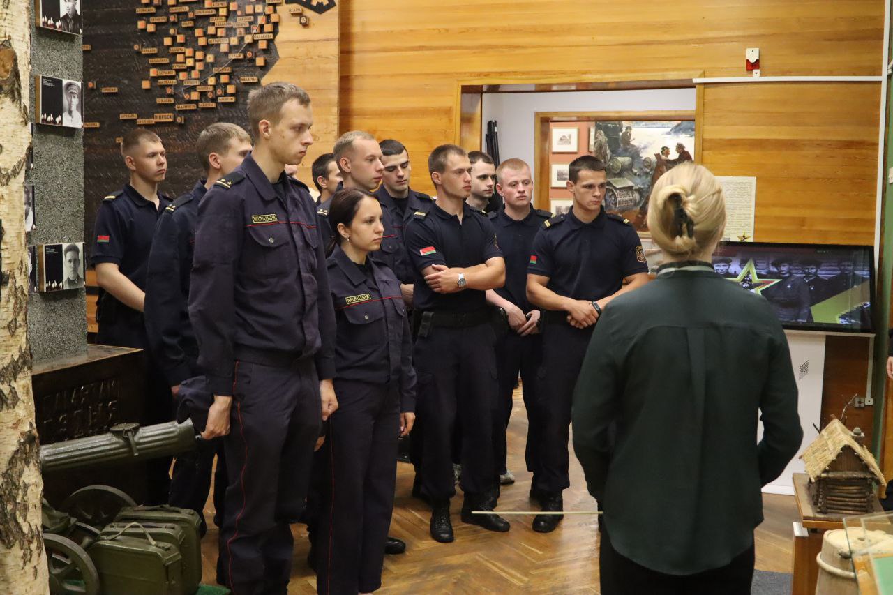 Для милиционеров провели обзорные и тематические экскурсии по экспозиции музея и лекции по истории партизанского движения на Витебщине. Во время экскурсии милиционеры узнали о жизни и вкладе Батьки Миная (Минай Филиппович Шмырёв) во время Великой Отечественной войны на Витебской земле.