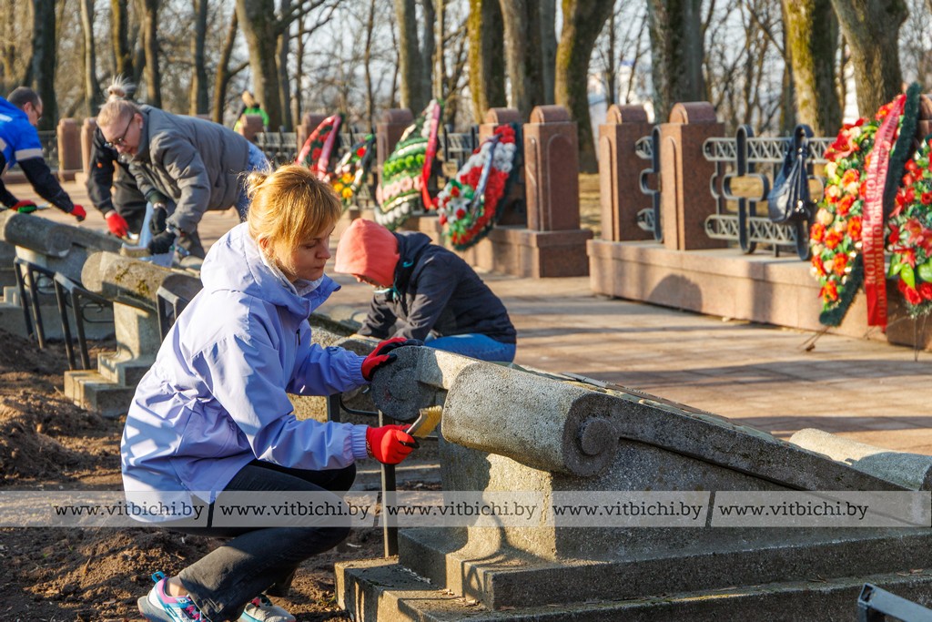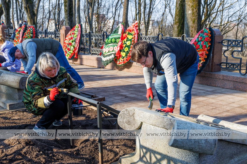 Трудовой десант сотрудников горисполкома и представителей коммунальных предприятий высадился в сквере героев Отечественной войны 1812 года. После краткого инструктажа, который провела директор ГП «Витебский Зеленстрой» Валентина Шендюкова, специалисты разошлись по различным участкам. Фронт работ – большой. Это покраска металлических конструкций на мемориальном кладбище воинов-освободителей, уборка веток и прошлогодней листвы на газоне. Один из наиболее ответственных участков добровольного труда – подкопка кустарниковой растительности, где очень важно не повредить корни, подчеркнула Валентина Шендюкова. Кроме того, на откосах береговой зоны Западной Двины проводилась уборка поваленных деревьев.