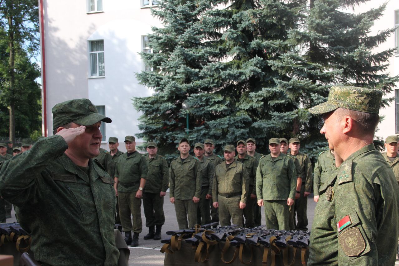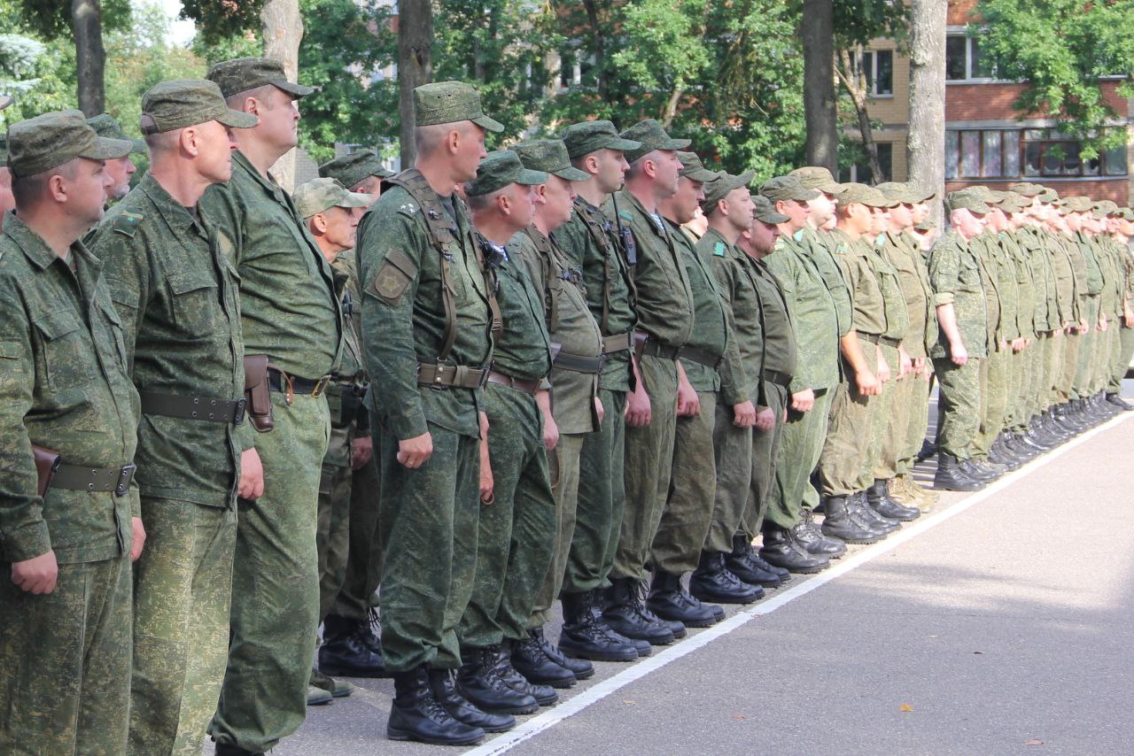 На плацу военного комиссариата Витебской области военнослужащим, призванным на мобилизационные учения, вручили табельное оружие.