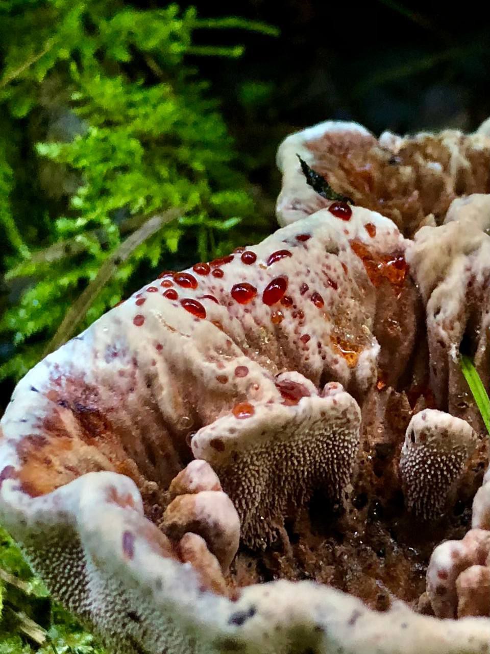 Несмотря на свой достаточно устрашающий вид «зуб дьявола» не ядовит. Красные капли – это жидкость, выделяемая грибом через поры шляпки в процессе, называемом гуттацией. Содержащийся в жидкости пигмент атроментин обладает антибактериальными свойствами. По мере роста «зуб дьявола» постепенно меняет внешний вид. Шляпка становится более плоской и приобретает коричневатый или сероватый оттенок, а выделение жидкости прекращается.