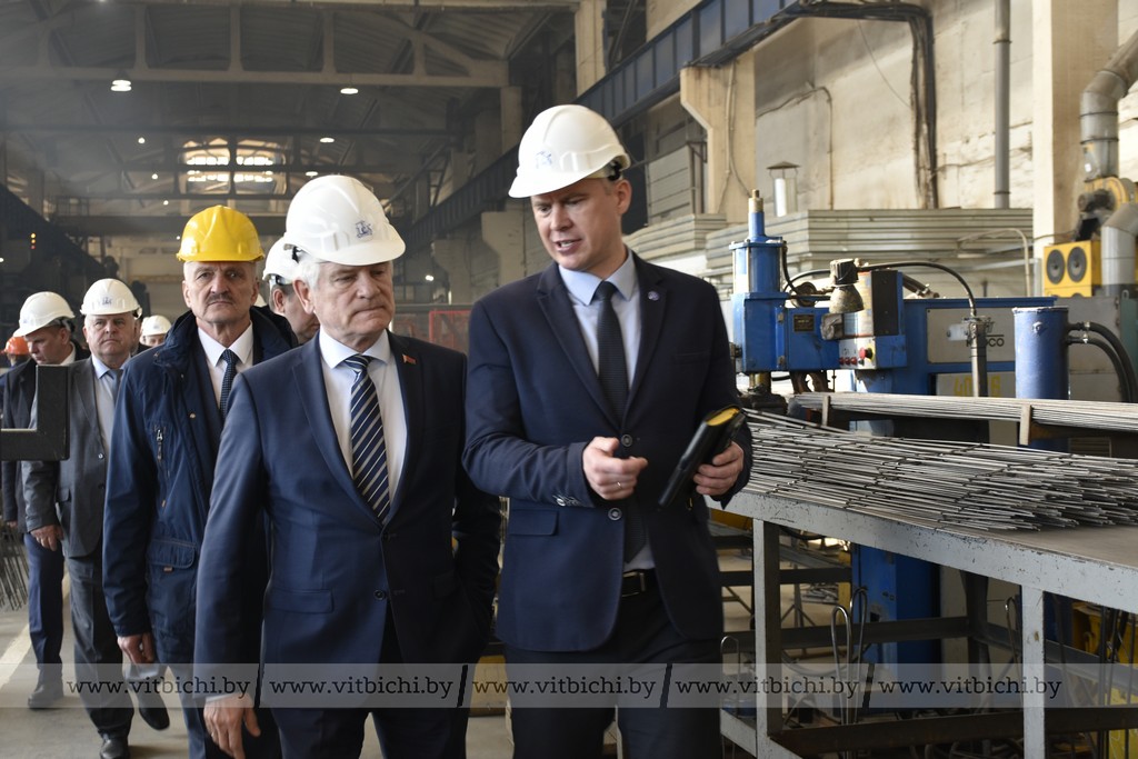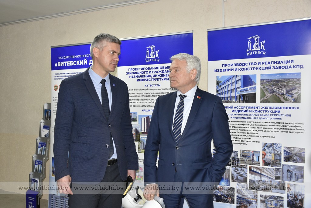 28 марта / «Витьбичи» / Виталий Сеньков/. На базе завода КПД государственного предприятия «Витебский ДСК» председатель Республиканского союза строителей Анатолий Ничкасов провел встречу с руководителями ведущих предприятий, учреждений и организаций строительного комплекса Витебской области с участием заместителя председателя облисполкома Дмитрия Петруши.