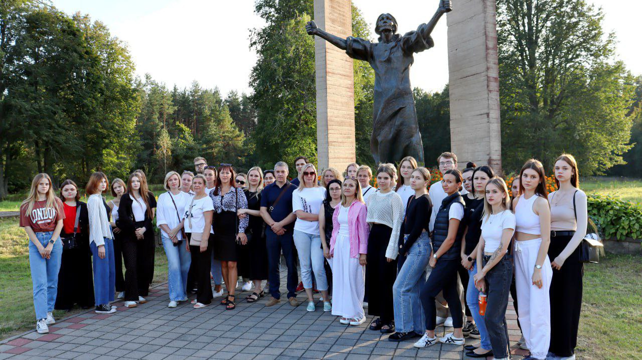 Далее молодые специалисты посетили мемориальный комплекс «Шуневка». Он находится на месте одноименной деревни, уничтоженной во время Второй мировой войны вместе с жителями. Сам монумент, который официально называется «Проклятие фашизму», представляет собой бронзовое изваяние женщины высотой 4,75 метров. Она символизирует мать, которая в отчаянии подняла руки кверху.