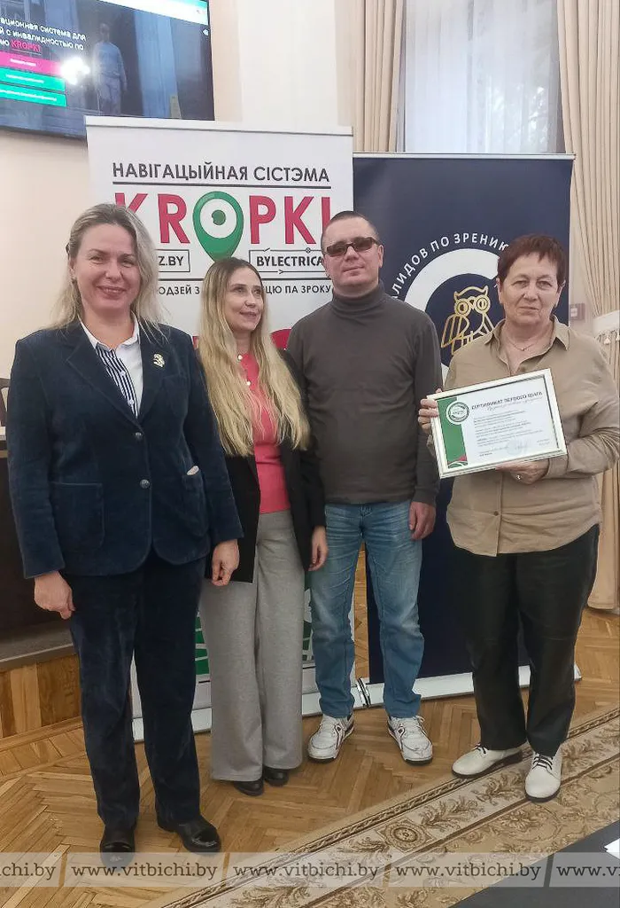 К слову, навигационная система KROPKI уже опробована и в Витебске – она установлена в здании городской центральной поликлиники. За новаторство и смелость в деле улучшения качества жизни людей с инвалидностью по зрению представителю этого медицинского учреждения был вручен «Сертификат первого шага».
