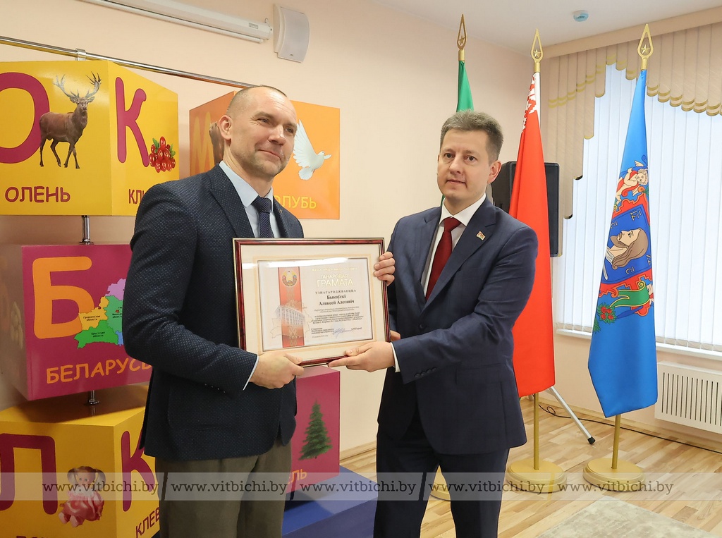 Александр Субботин вручил заведующему детским садом № 114 Екатерине Буренковой подарочный сертификат на 10 тысяч рублей на приобретение учебного оборудования. Благодарности облисполкома вручили гендиректору частного предприятия «Стройсфера» Леониду Лясуну и производителям работ Олегу Готовкину и Андрею Кунцу.