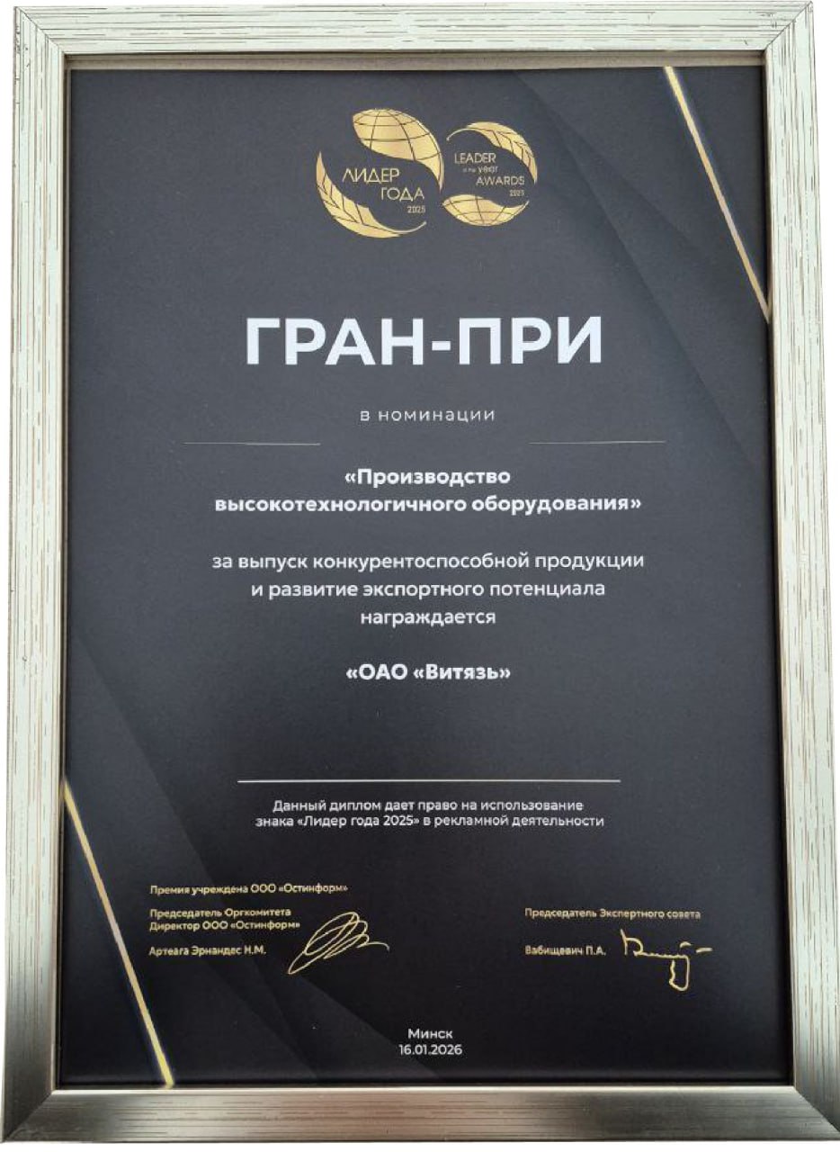 Витебское ОАО «Витязь» стало обладателем Гран-при Международной бизнес-премии «Лидер года -2025». Десятая церемония вручения награды прошла в Минске.