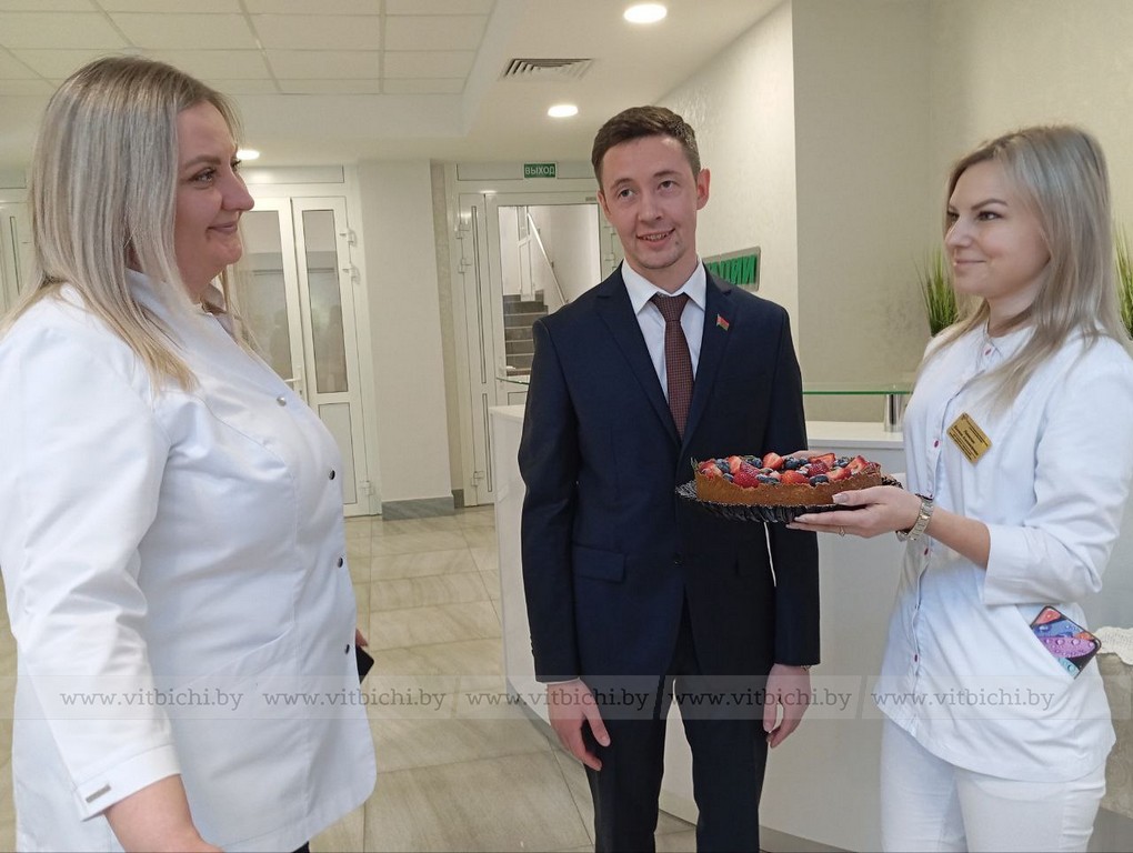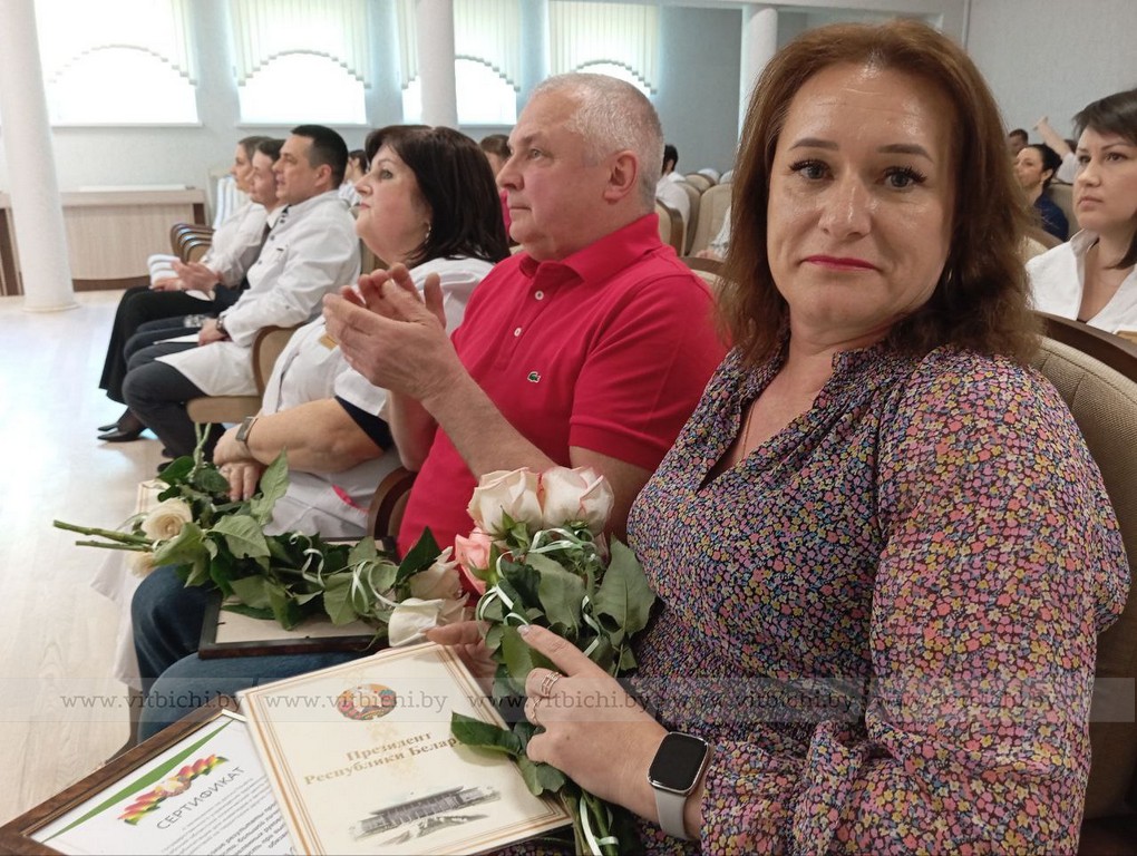 По итогам работы в прошлом году и первом квартале 2025-го пять сотрудников занесены на Доску почёта центра. Это врач Дарья Лысенко, медсестра по физиотерапии Елена Павлюкевич, заместитель главного бухгалтера Анжела Бутанова, инженер-электроник инженерно-технической службы Владимир Волков и санитарка (буфетчица) Елена Хадунькина. Всем им вручены соответствующие сертификаты и цветы.
