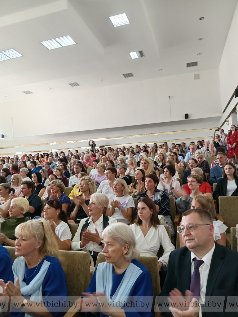Трогательный момент – на сцене Юрий Панфилов поздравил с днем рождения заслуженного учителя Республики Беларусь, отличника образования Беларуси, Почетного гражданина города Витебска Валентину Широкову, которая стояла у истоков ставшей теперь знаменитой витебской гимназии № 1 имени Ж. И. Алфёрова. И напутствием в дальнейшую жизнь для молодых специалистов, также присутствовавших в зале, стали слова Валентины Трофимовны, которые были встречены горячими аплодисментами: