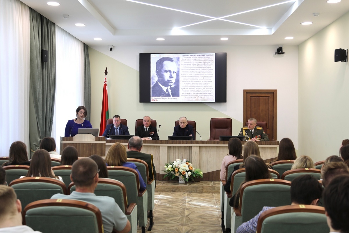 28 апреля / «Витьбичи» / Юлия Прищепа /. В Витебском государственном медицинском университете в рамках 77-ой международной научно-практической конференции студентов и молодых ученых «Актуальные вопросы современной медицины и фармации» прошли юбилейные памятные чтения, посвященные 80-летию Победы советского народа в Великой Отечественной войне.