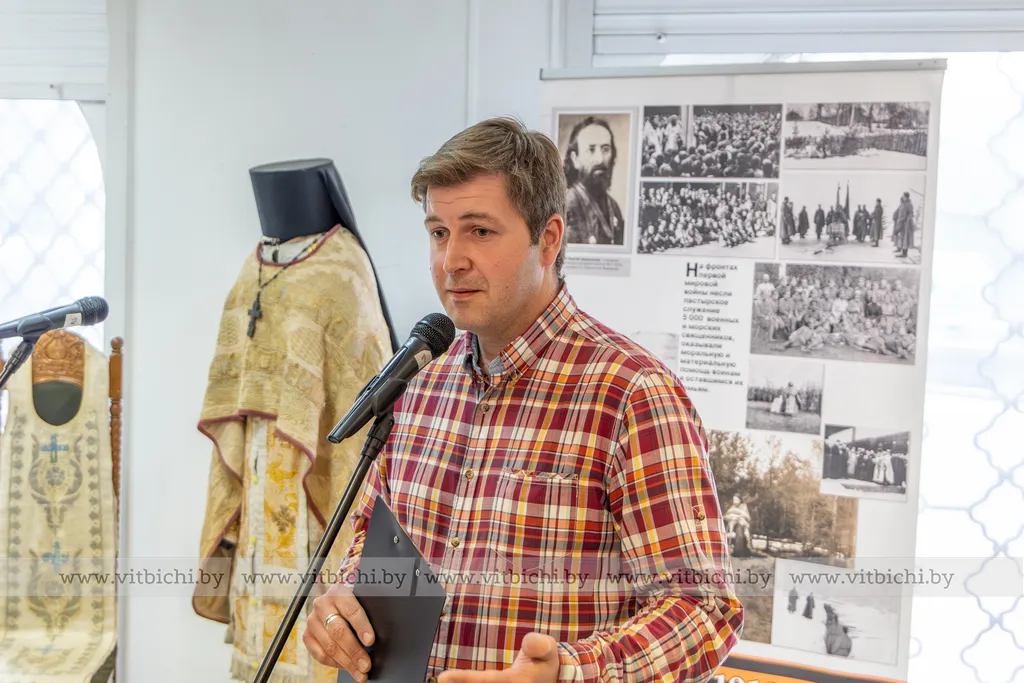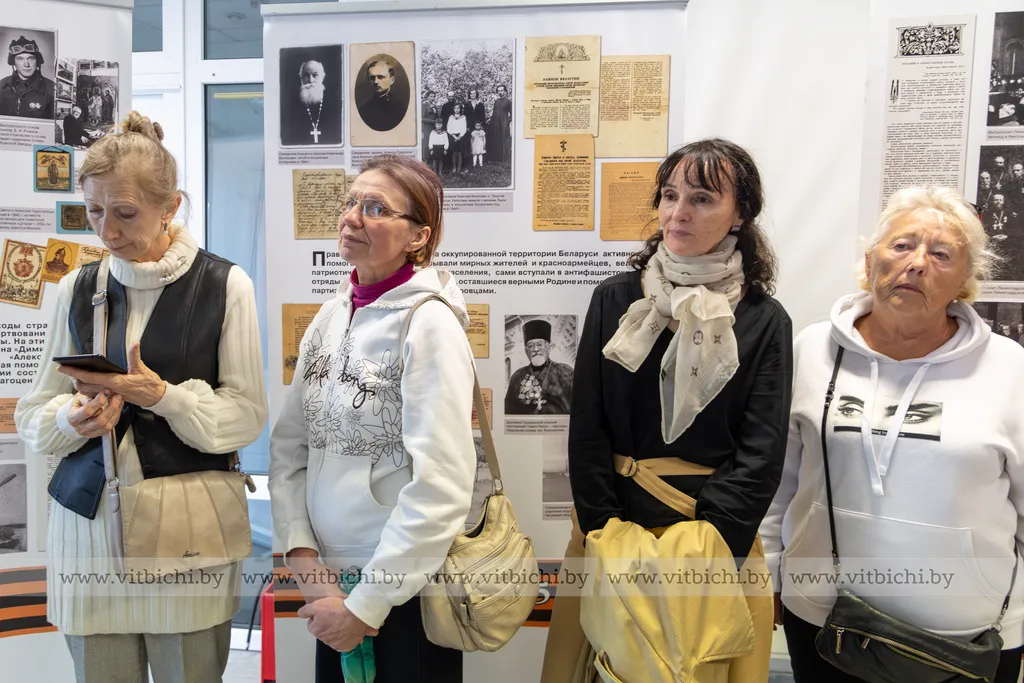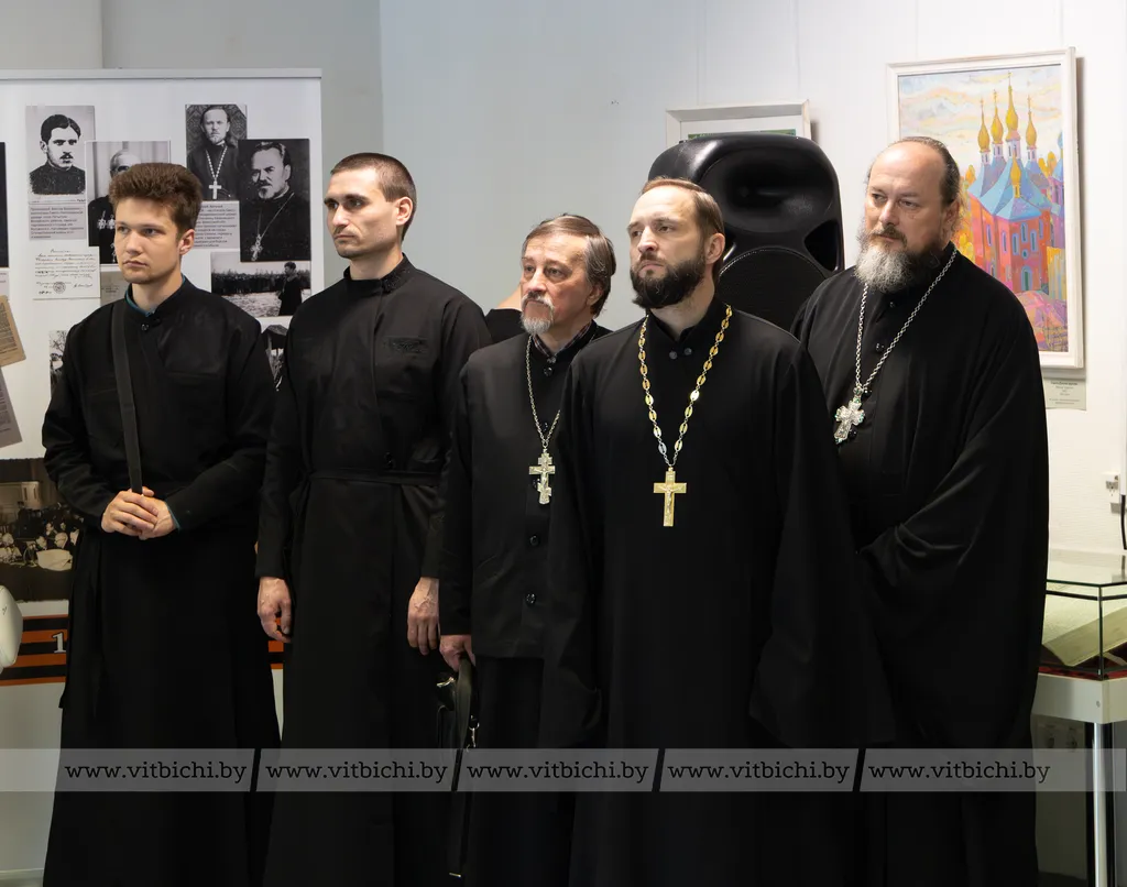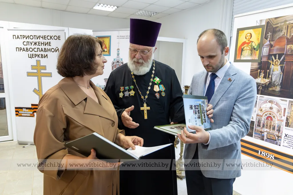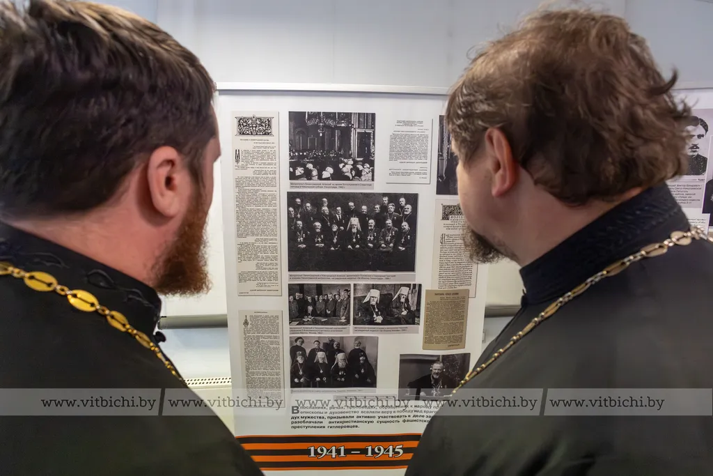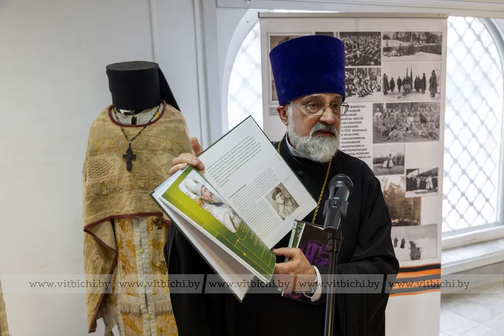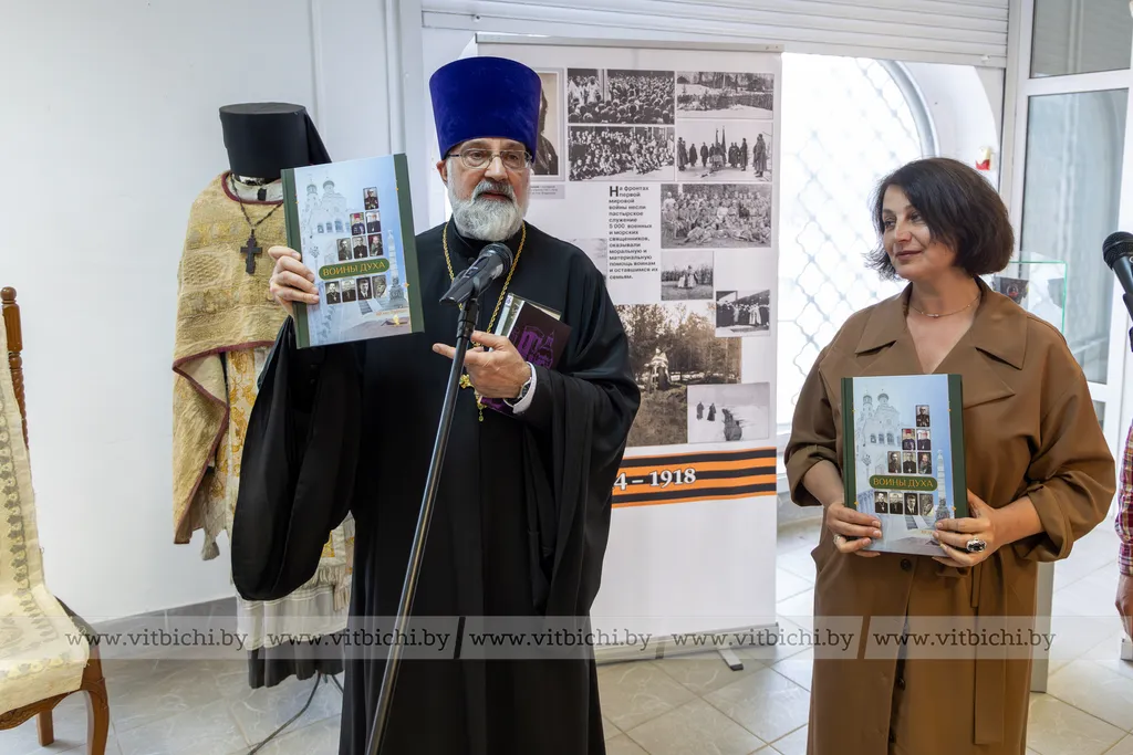 Символично, что выставка, подготовленная силами Синодального информационного отдела и отдела по взаимодействию с Вооруженными силами, Церковно-исторического музея Белорусской Православной Церкви при Минской духовной академии и потомков священнослужителей-ветеранов, открылась в год 80-летия Победы советского народа в Великой Отечественной войне и в дни, когда продолжается празднование Святой Троицы. Как рассказал руководитель епархиального отдела по взаимодействию с Вооруженными силами Республики Беларусь протоиерей Александр Мозолев, немногим ранее в Минске состоялась презентация книги «Воины духа», отдельные иллюстрации из которой, фотографии, документы представлены на выставке в Витебском областном краеведческом музее. В этой книге более подробно отображены житие и духовный подвиг пока еще только восьми священнослужителей, их участие в войне в том или ином качестве. Но это только начало, материалов собирается столько, что их хватит не на одно издание. Экземпляр первой книги был подарен директору музея Татьяне Старинской. На церемонии открытия выставки главный специалист главного управления идеологической работы и по делам молодежи Витебского облисполкома Иван Здесев отметил: