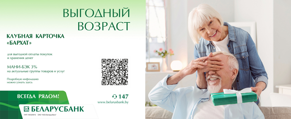 Учитывая данные изменения, Беларусбанк предлагает заблаговременно позаботиться о переводе в банк выплаты пенсии и других социальных выплат, оформив карту Клуба «Бархат».
