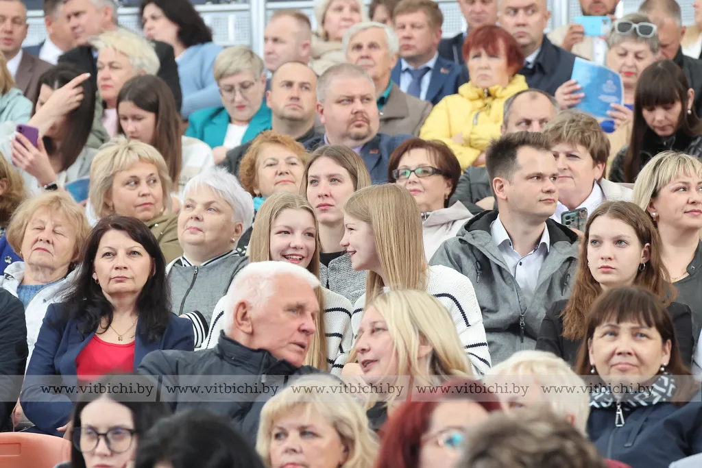 Под сводами Летнего амфитеатра собрались тысячи людей, среди которых руководители области и города, депутаты всех уровней, представители трудовых коллективов, делегации из Пскова, Липецка, Архангельска и других российских городов и регионов, а также из Бреста, представители Национальной академии наук Беларуси и Роскосмоса.