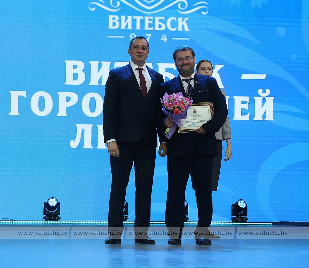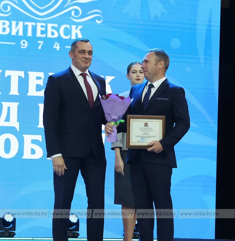 Праздничная атмосфера чувствуется во всём, и гимн города, звучащий со сцены, сразу настраивает на торжественный лад. Председатель облисполкома Александр Субботин, тепло поздравив присутствующих, выполнил приятную миссию и вручил от своего имени Благодарности руководителям предприятий и учреждений, людям, которые своим трудом приумножили славу Витебска.