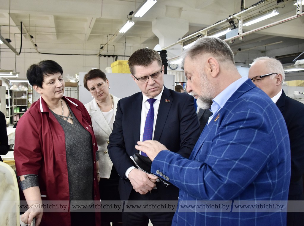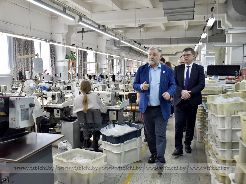 Участники встречи посетили заготовочный участок, пошивочно-отделочный участок, поговорили с работниками предприятия об условиях их труда, соблюдении требований безопасности на производстве.