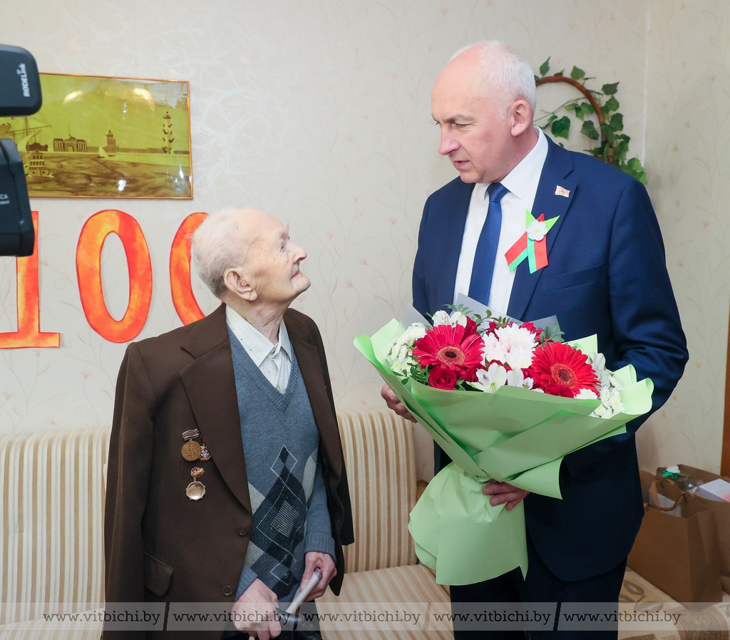 Глава города поздравил Александра Симоновича с главным для белорусского народа праздником, поблагодарил его за неоценимый вклад в Великую Победу и вручил юбилейную медаль «80 лет освобождения Беларуси от немецко-фашистских захватчиков».
