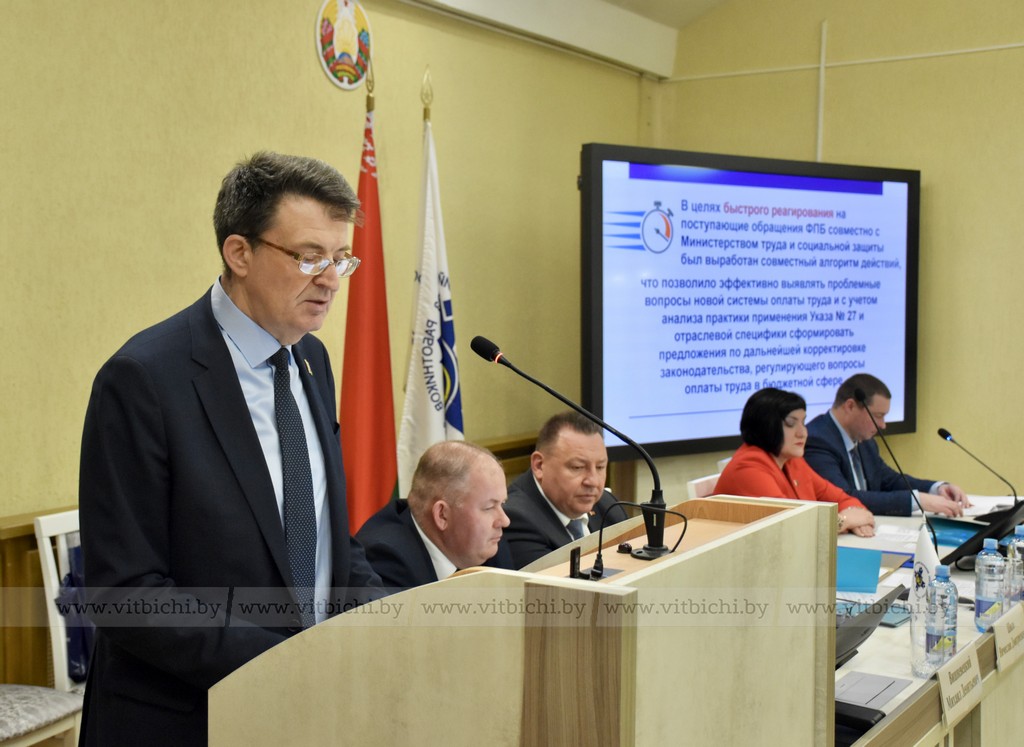 О том, что вопросы оплаты труда медицинских работников являются первоочередная заботой профессионального союза, свидетельствовало выступление на пленуме председателя Белорусского профсоюза работников здравоохранения Вячеслава Шило, который коснулся совместительства, доплат за квалификационную категорию и контракт. Он также проинформировал участников пленума, что в системе здравоохранения республики сейчас работает 18 процентов людей пенсионного возраста, около 10 тысяч медиков-пенсионеров вернулись в поликлиники и больницы после изменений в пенсионном законодательстве.