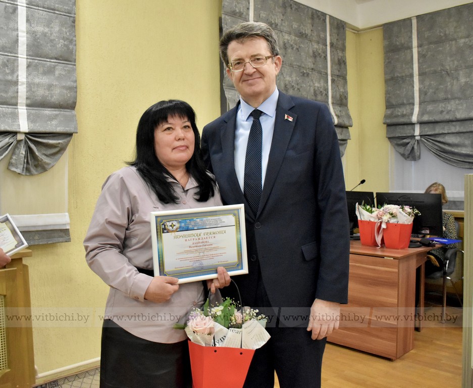 Группе профсоюзных активистов вручены Почетные грамоты и благодарности за деятельность по защите прав и интересов членов профсоюза, плодотворный труд в системе здравоохранения и высокий профессионализм. Нагрудного знака «За заслуги в развитии отраслевого профсоюза» удостоена главный технический инспектор труда областной организации Белорусского профсоюза работников здравоохранения Светлана Кутузова.