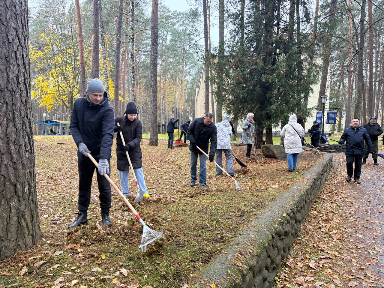 Дружной командой они сделали большую территорию этой востребованной у белорусов и гостей нашей страны здравницы чище и красивей. Вооружившись граблями и метлами, профсоюзы убрали осеннее золото, привели в порядок и подготовили к зиме растения на многочисленных клумбах.