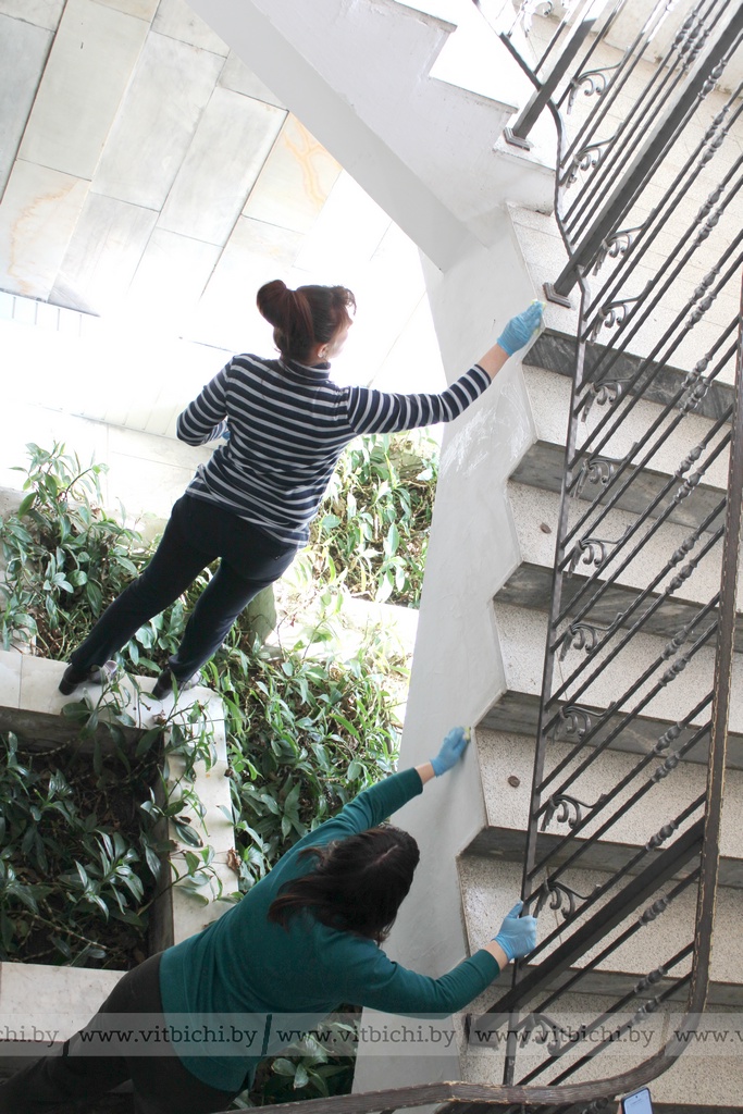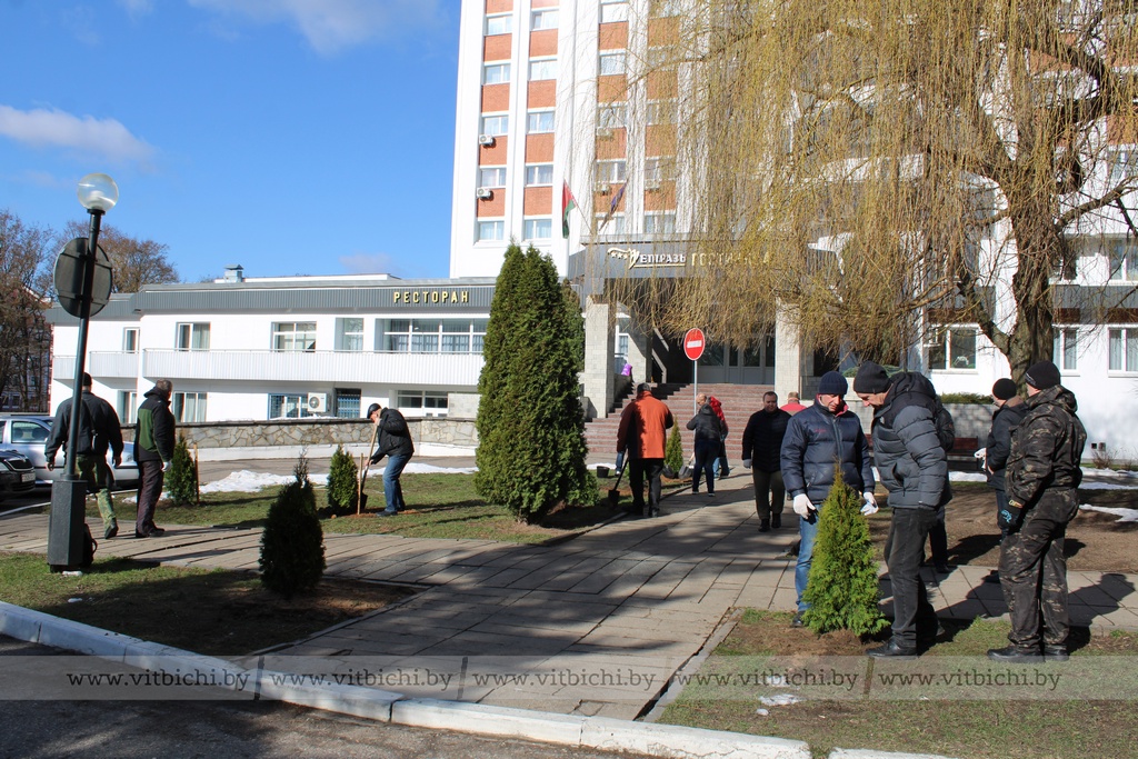 12 апреля / «Витьбичи» / Юлия Прищепа /. Представители областного объединения профсоюзов, председатели отраслевых профсоюзных организаций на республиканском субботнике работали в гостиничном комплексе «Ветразь» унитарного предприятия «Витебсктурист».