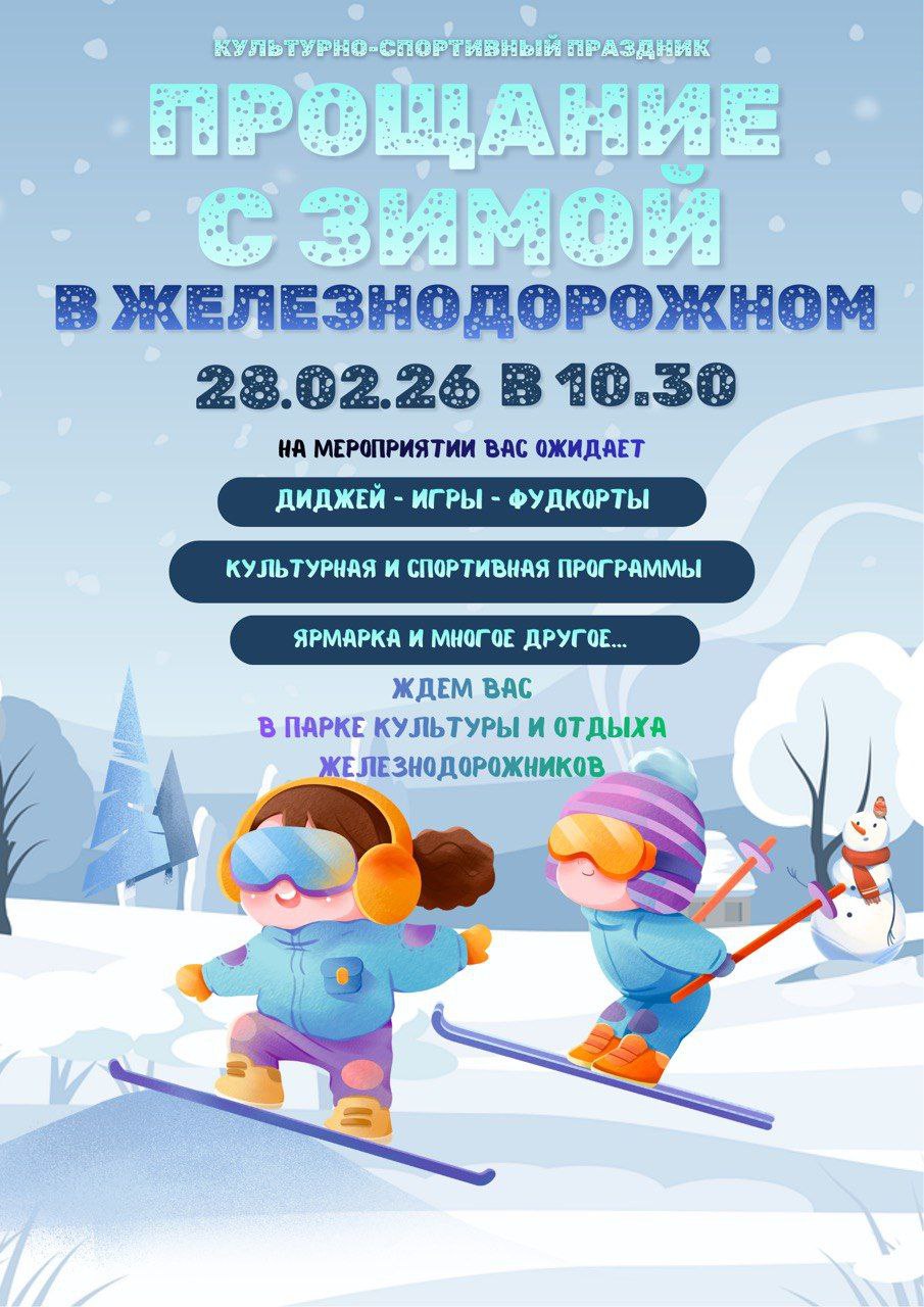 В субботу, 28 февраля, в 10:30 в парке культуры и отдыха Железнодорожников пройдет яркое культурно-спортивное мероприятие «Прощание с зимой в Железнодорожном».