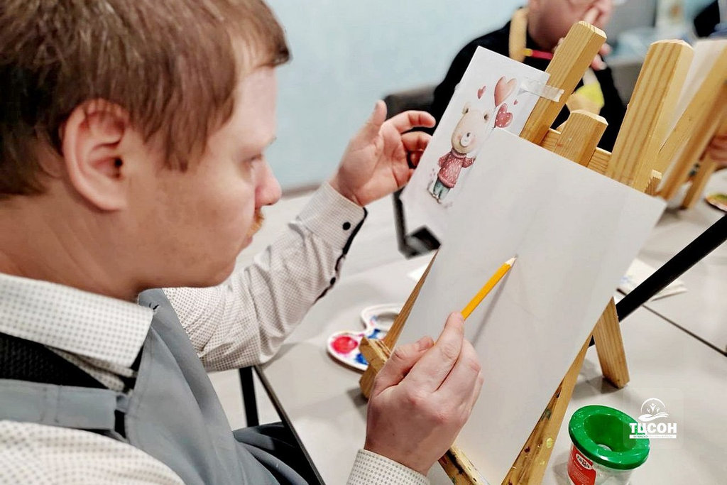 Было решено провести занятие в просторном, светлом обновленном помещении отделения социальной реабилитации, абилитации инвалидов ТЦСОНа Октябрьского района Витебска по Московскому проспекту, 64. Здесь, установив мольберты, она создала атмосферу настоящей художественной студии. К тому же волонтер заранее узнала у сотрудников отделения об особенностях каждого посетителя, чтобы быть готовой оказать необходимую помощь и поддержку.