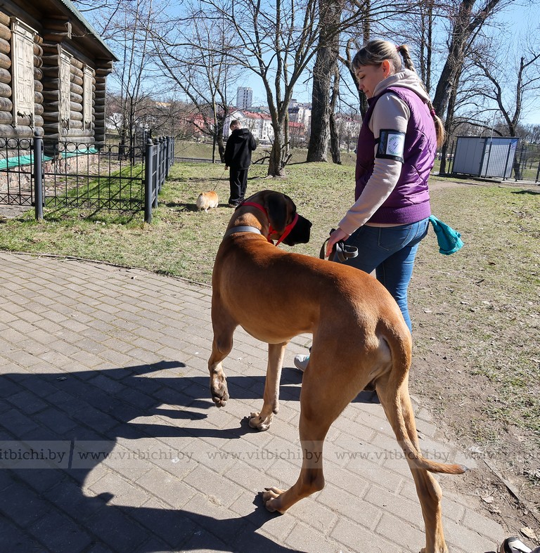 Второй Грей, немецкий дог, – огромный пёс. Несмотря на размеры, в квартире ему и с ним комфортно. Как сказала хозяйка Вика, для Грея главное не место, а хозяин рядом. Любит обниматься и вставать на плечи, хотя сейчас ему не особенно это позволяют, естественно, из-за размеров.