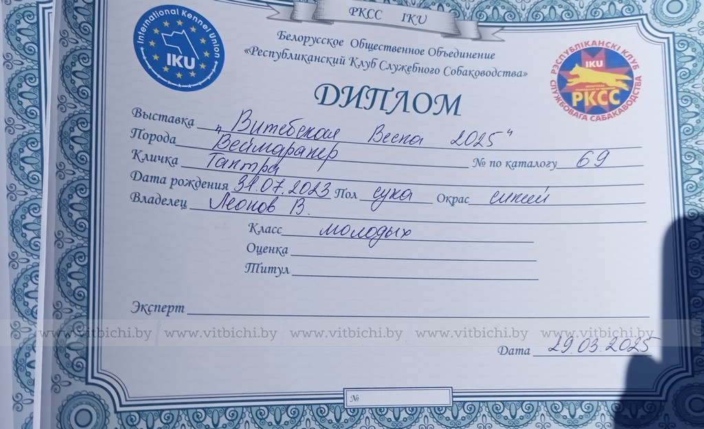 – Они выдаются собакам, которые выигрывают класс, – пояснила организатор выставки Ирина Гылка. – После получения четырёх таких дипломов или сертификатов животному присваивается титул чемпиона Беларуси, и хозяин может участвовать в разведении породы.
