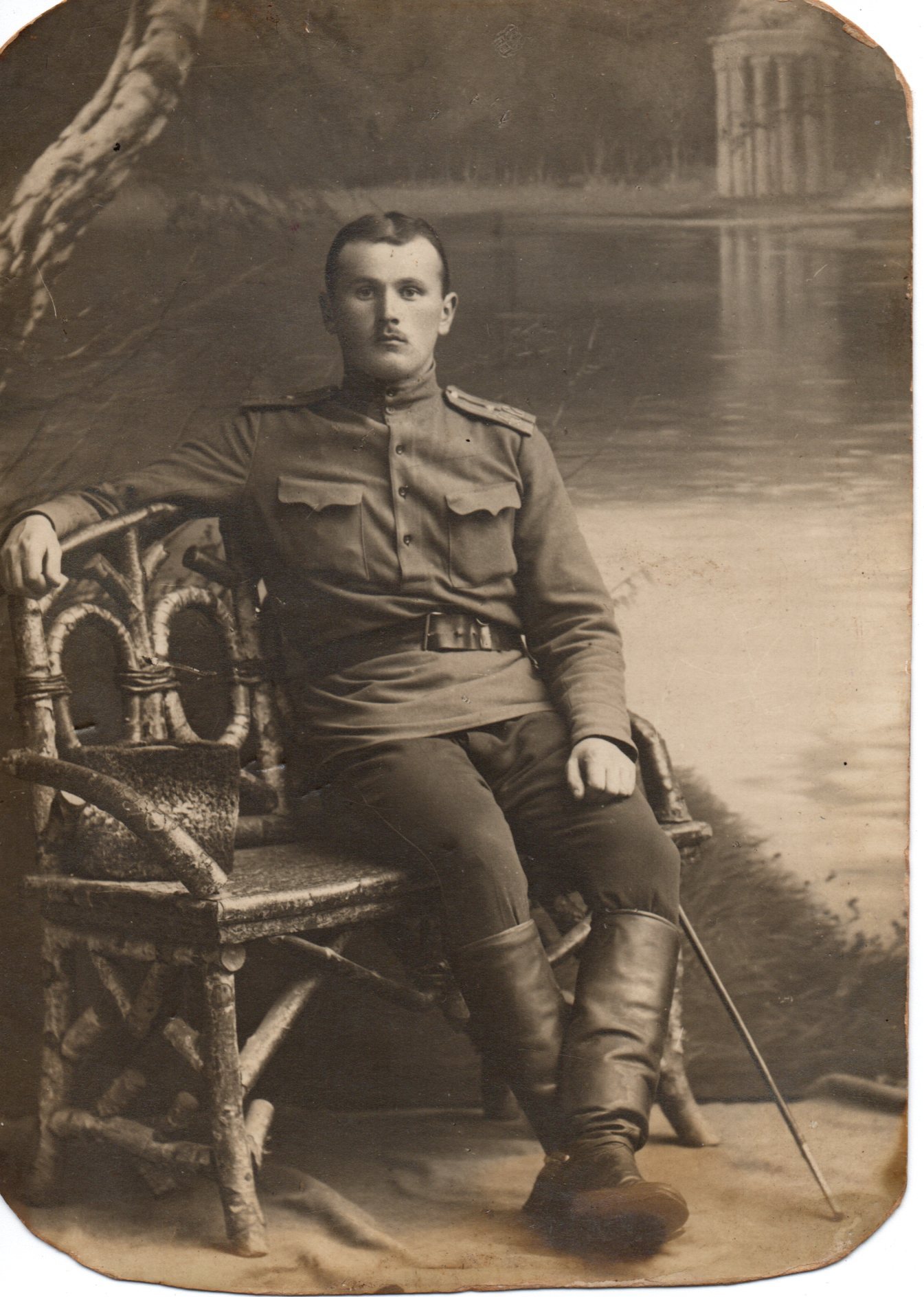 Трэці здымак зроблены, відавочна, яшчэ ў мірную пару, бо сфатаграфаваны будучы афіцэр у ладна скроеным і адмыслова падагнаным да статнай фігуры стыльным цывільным гарнітуры, белай кашулі і гальштуку-бабачцы.