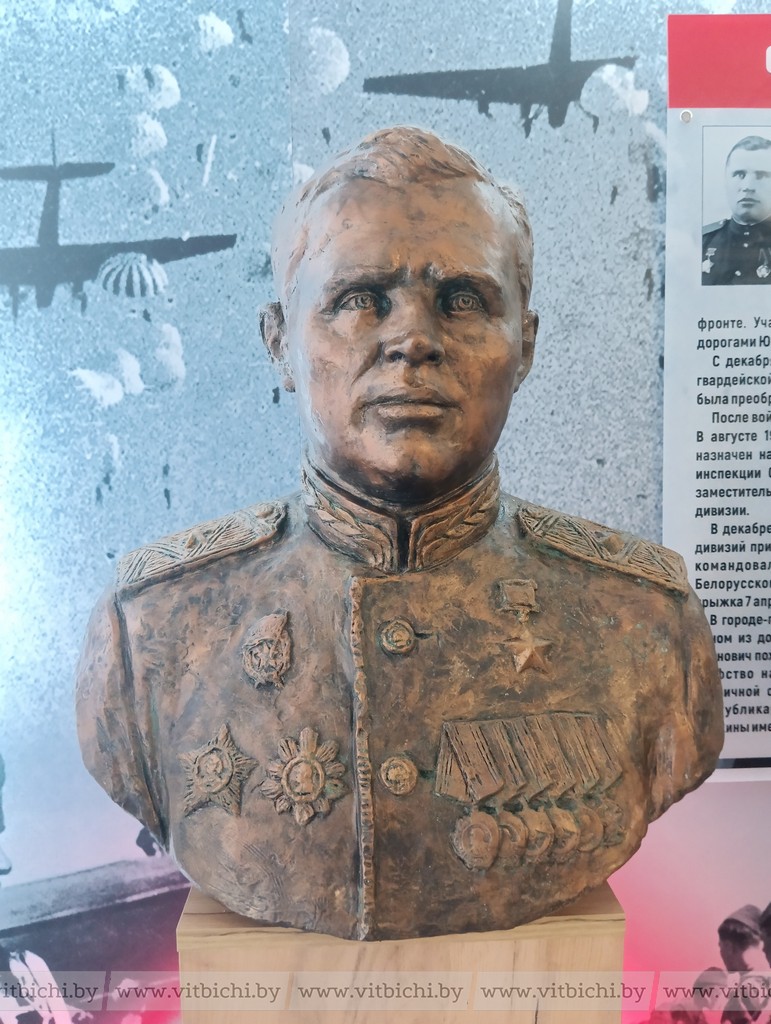 14 декабря /«Витьбичи»/ Виталий Сеньков/. Недавно «Витьбичи» сообщили читателям об открытии бюста Героя Советского Союза гвардии генерал-майора Михаила Денисенко, участника Великой Отечественной войны, третьего по счету командира 103-й гвардейской воздушно-десантной дивизии.