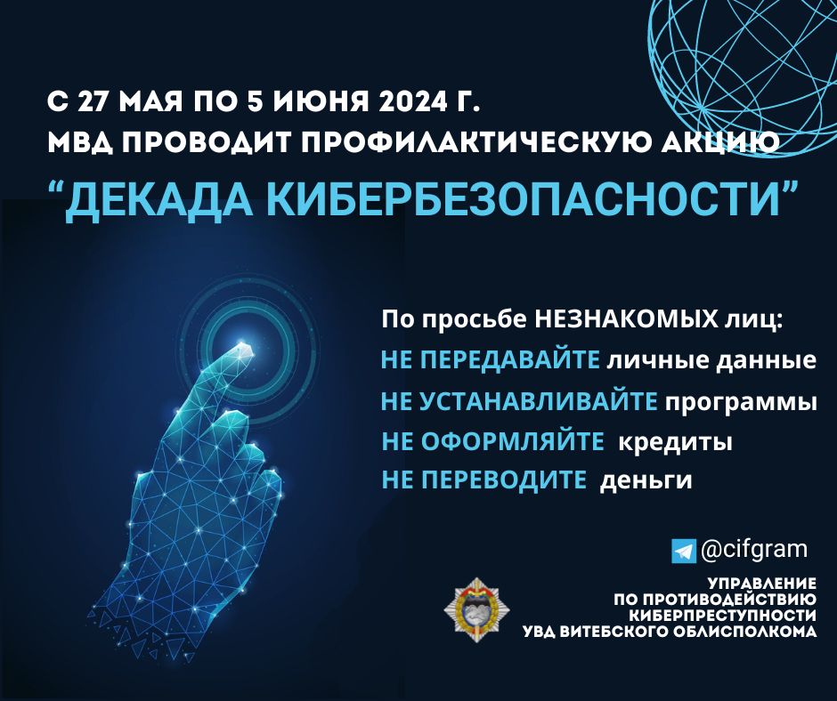 Профилактическая акция включает в себя комплекс мероприятий по широкомасштабному информированию населения о современных методах и способах обмана, используемых кибермошенниками в сети Интернет, мерах противодействия и профилактики. Кибердекада направлена на то, чтобы повысить цифровую грамотность учащихся, их родителей, педагогов.