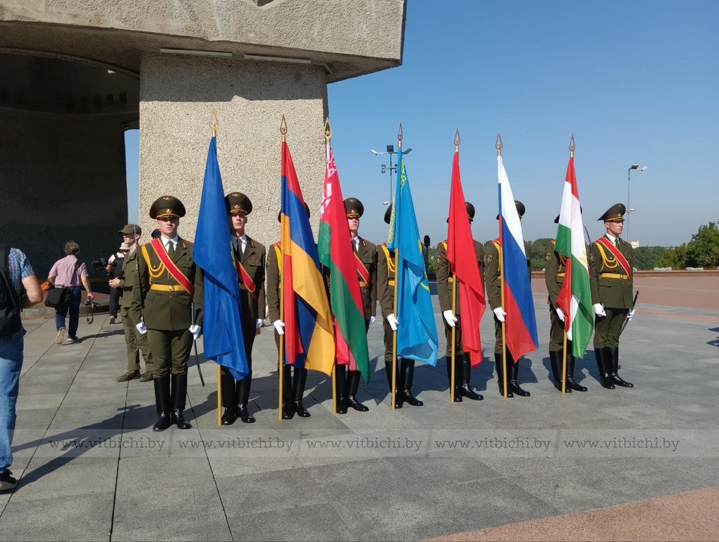 Делегация военнослужащих государств – членов ОДКБ и рабочих органов Организации, также председатель Витебского облисполкома Александр Субботин и председатель Витебского горисполкома Алексей Героев возложила цветы к памятнику «Десантникам всех поколений», а также к мемориалу на Площади Победы. Церемонии стали первыми мероприятиями в рамках совместных учений с Коллективными силами оперативного реагирования Организации Договора о коллективной безопасности «Взаимодействие-2025», специальных учений «Поиск-2025» и «Эшелон-2025».