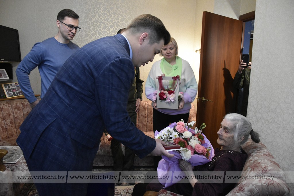 Вместе с представителями посольства ветерана посетили начальник направления идеологической работы и социальной защиты Витебского областного военкомата полковник Константин Харенко, председатель профкома ОАО «Витебские ковры» Наталья Белецкая.