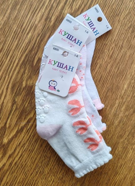 Носки детские (для детей до 1 года) с маркировкой «КУШАН», артикул 6850, изготовитель «Ruian hangte knitting factory» (Китай)