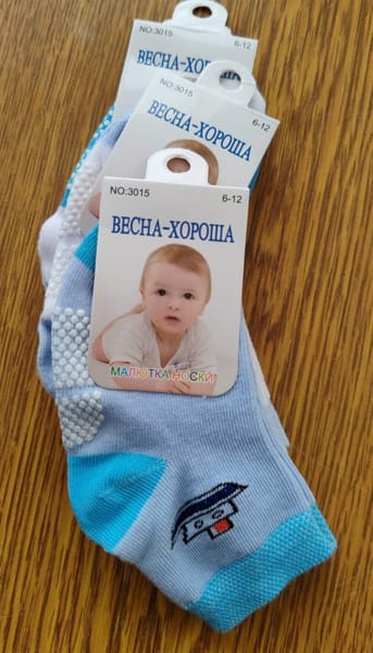 Носки детские (для детей до 1 года) с маркировкой «Весна-хороша», артикул 3015, изготовитель «Ruian hangte knitting factory» (Китай)