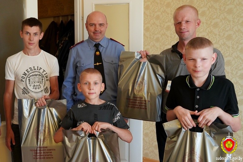 Ежегодно в августе доброй традицией стало проведение благотворительной акции «Соберем портфель вместе», в рамках которой помощь оказывается уязвимым категориям семей, которым нужна поддержка. Одну из таких посетили судебные эксперты. У Андрея из Витебска трое сыновей: 9,13 и 16 лет. Отец самостоятельно справляется с обязанностями по воспитанию и обеспечению своих детей.