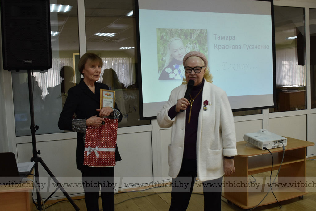 Начальник отдела культуры Витебского горисполкома Наталья Шиенок от имени работников культуры областного центра поблагодарила Тамару Ивановну за ее произведения, а также за активную общественную деятельность. Благодаря ей стали известны имена многих литературных самородков, очень популярны творческие мероприятия, которые организует Витебское областное отделение общественного объединения «Союз писателей Беларуси». Поклонники таланта пожелали автору новых творческих достижений.