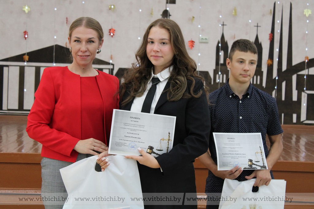 Заместитель председателя комиссии по делам несовершеннолетних администрации Октябрьского района Александра Александрёнок поблагодарила всех за участие в районном проекте «Правовая мастерская». Она рассказала, что летом ребята разрабатывали и представляли видеоролики о государственных символах страны, трудовом, гражданском и семейном законодательстве. Александра Александрёнок и участковый инспектор инспекции по делам по делам несовершеннолетних отдела внутренних дел администрации района Юлия Маркевич вручили грамоты, благодарности и ценные подарки авторам самых креативных видеоработ, профилактических брошюр и плакатов.