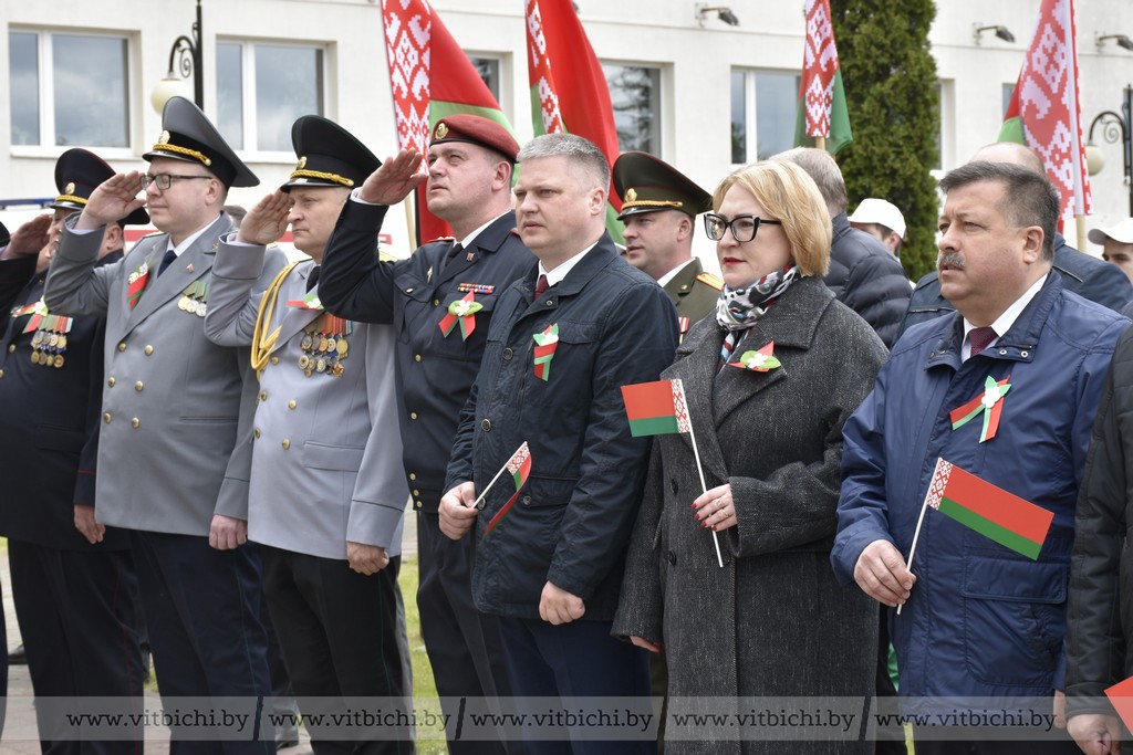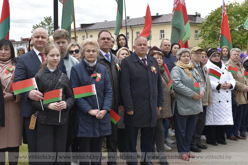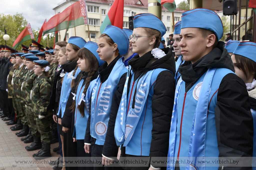 Утром на площадке Витебского государственного ордена Дружбы народов медицинского университета состоялся торжественный митинг с участием представителей органов власти, общественных организаций, военнослужащих, студентов, кадетов, учащихся военно-патриотических классов средних школ города и школ Мира, членов Белорусской республиканской пионерской организации.