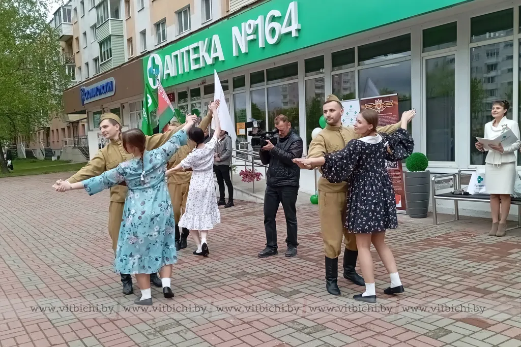 5 мая / «Витьбичи» / Нина Писаренко /. Витебские фармацевты и провизоры, присоединившись к флешмобу «Вальс Победы», провели одноименную акцию на площадке возле аптеки №164 на Московском проспекте, специально оформленной по этому случаю.
