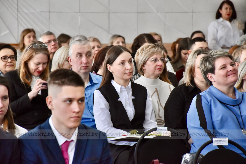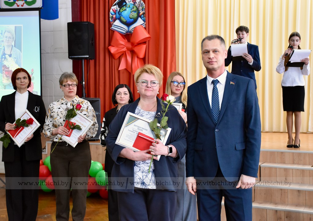 Торжественное мероприятие проходило на базе средней школы № 44 г. Витебска. Это учреждение образования имеет китайский уклон, поэтому глава администрации Октябрьского района г. Витебска Владимир Белевич, поздравляя педагогов и учащихся, приветствовал их на китайском языке. Он высказал учителям слова благодарности за их знания, душевные силы, доброе сердце. А учащимся пожелал не останавливаться на достигнутом.