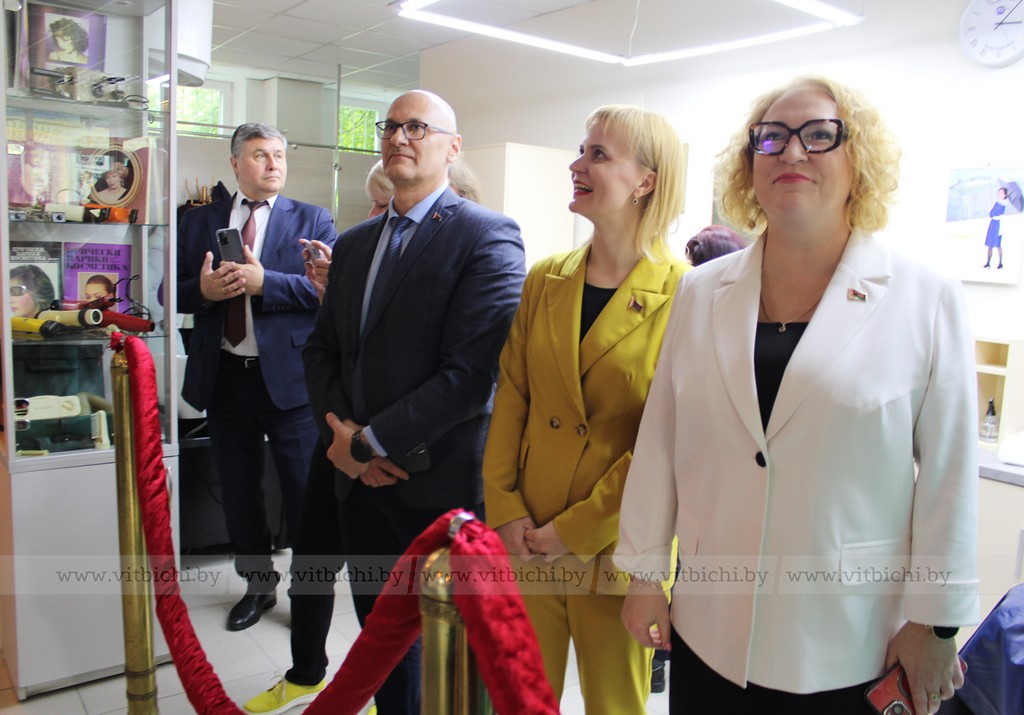На открытии музея также присутствовали заместитель председателя Витебского облисполкома Анжелика Никитина, председатель Витебского городского Совета депутатов Ольга Иванова, а еще человек, о котором Николай Орлов отозвался особенно тепло. Это парикмахер 6-го разряда, мужской мастер, которая почти полвека проработала в парикмахерской № 1 «Встреча» Лидия Козлова.