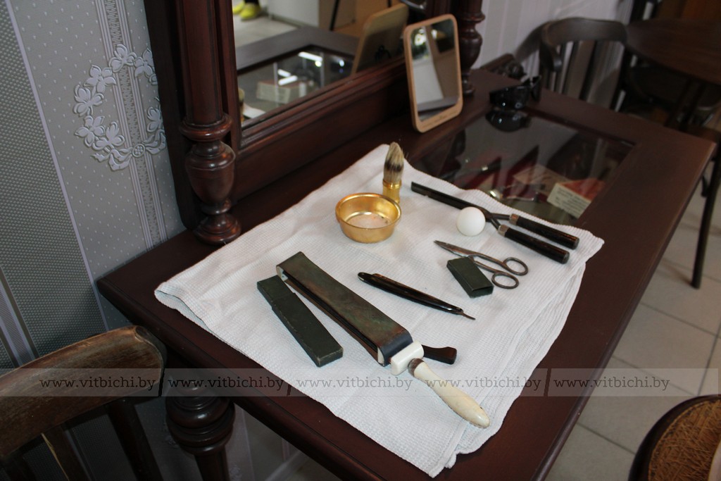 Как рассказал директор предприятия “Мир услуг Плюс” Николай Орлов, гостей музея знакомят с историей Марка Шагала и его дяди Зюси – известного фризирэра (в переводе с идиш парикмахера), который, по словам самого художника, «мог работать в Париже, но был звездой в Лиозно».