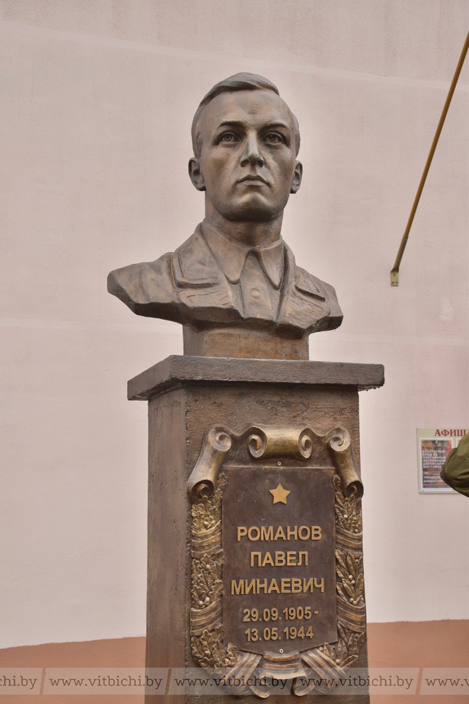 28 сентября / "Витьбичи" / Александр Пукшанский /. Возле Бешенковичского районного историко-краеведческого музея на аллее Героев Советского Союза – уроженцев Бешенковичского района, открыли бюст первого секретаря подпольного райкома партии и командира партизанский бригады "За Советскую Белоруссию" Павла Минаевича Романова.