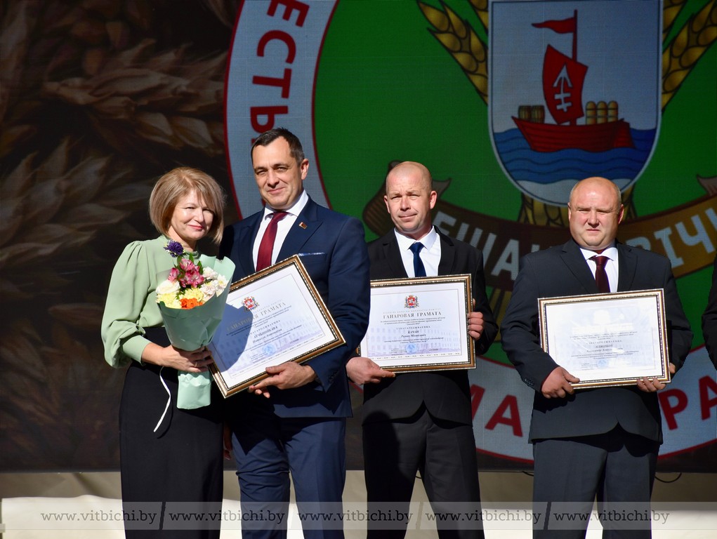 Были вручены грамоты Витебского областного Совета депутатов. Наградили передовиков и от имени Палаты представителей Национального собрания, министра сельского хозяйства и продовольствия, комитета по сельскому хозяйству и продовольствию Витебского облисполкома, Бешенковичского райисполкома.